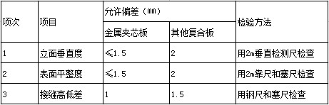 9、墻體板材安裝的允許偏差和檢查方法如下:
