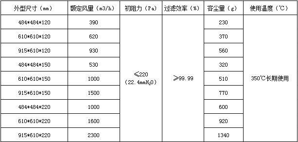 在使用的耐250℃紅色高溫硅膠與耐350-400℃黑色高溫?zé)o機(jī)膠因受膠水物理特性的影響(流動(dòng)性太差),故250℃H13高溫高效過(guò)濾器實(shí)際過(guò)濾效率在H12-H13之間;350-400℃H13高溫高效過(guò)濾器實(shí)際過(guò)濾效率在H11-H12之間。